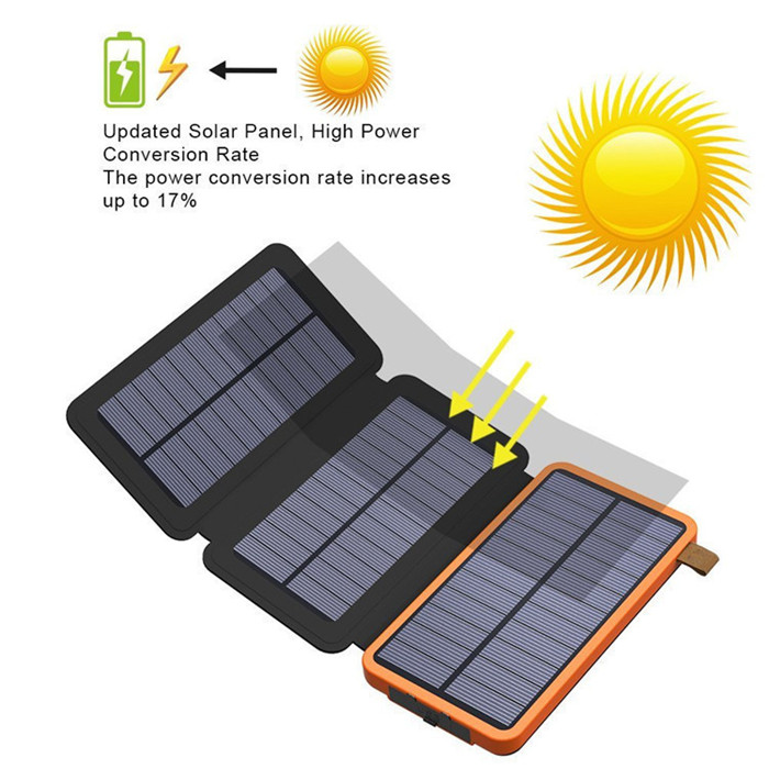 USB input: 5V/2.4A,type-C ,charged by solar panel,AC charger