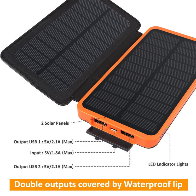 USB input: 5V/2.4A,type-C is optional ,charged by solar panel,AC charger